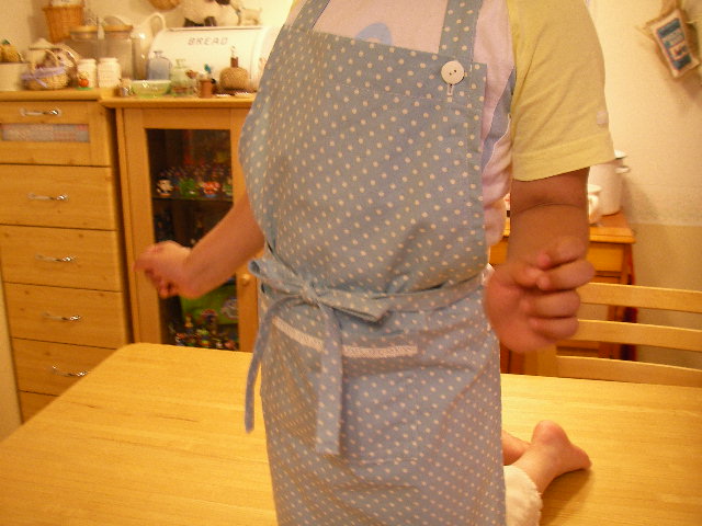 なかなか爽やかなエプロンで自分では気に入ったよ(*^.^*)