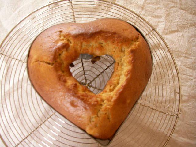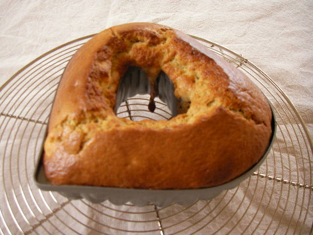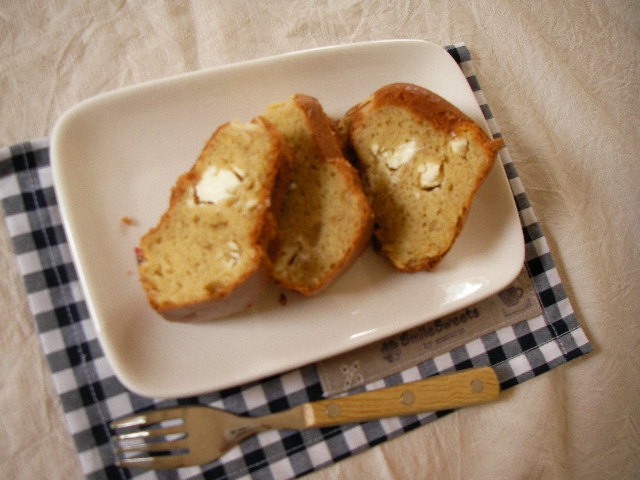 今日は、だいぶ熟してきたバナナでケーキをおやつに