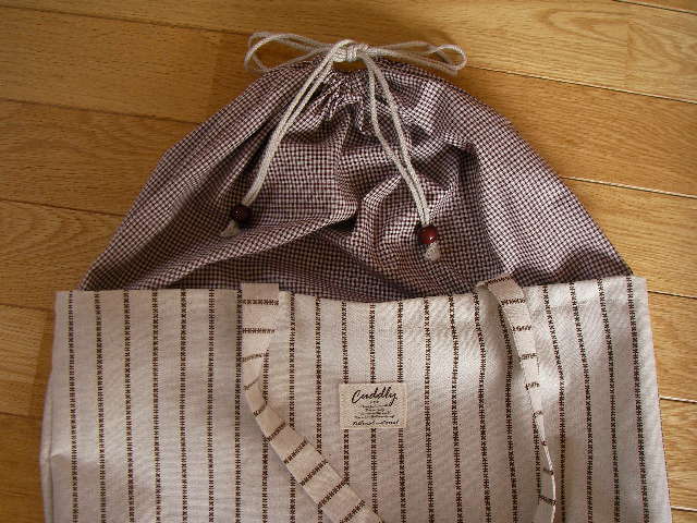 バザーの話なんかを色々しました。子ども用エプロン&巾着のセットなんか