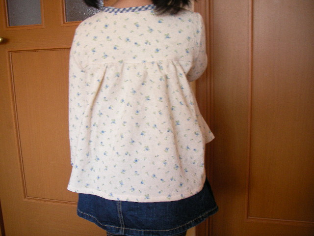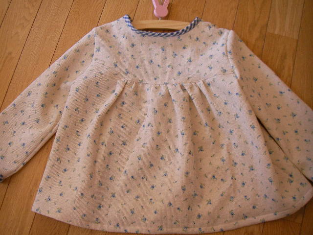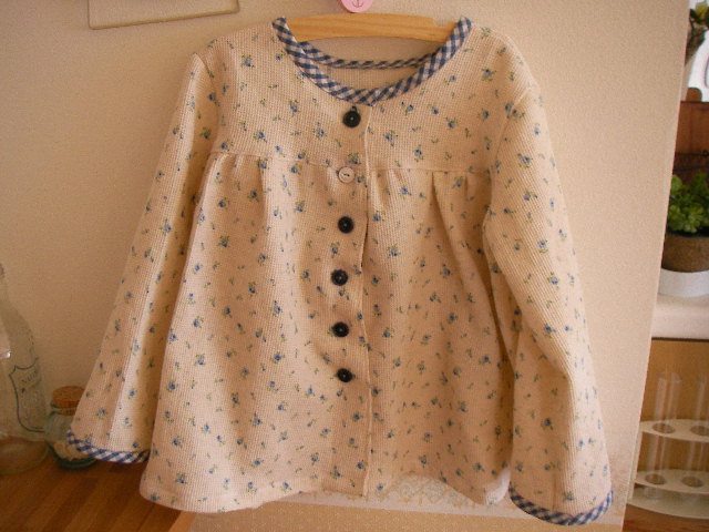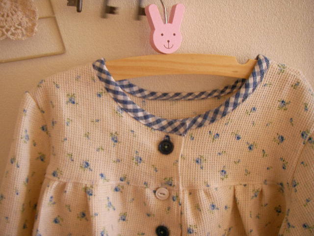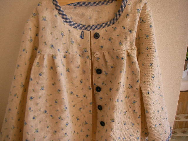 ブルーの小花柄のワッフル(ニットじゃないよ)で作ったよ☆