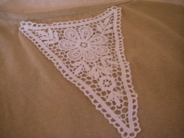 ギャザーのところに綿レースを挟みました。