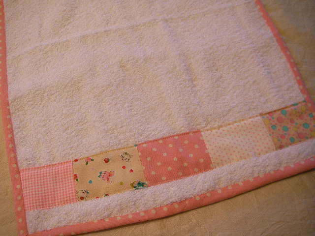 よく粗品でもらうタオルにパッチしてパイピングしました。。