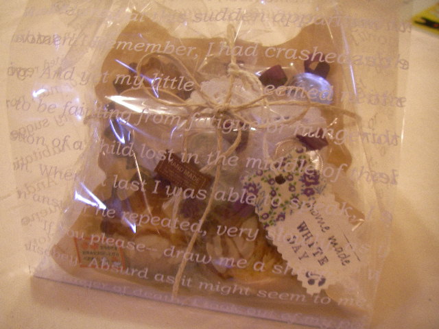 タグも手作りしてみたよ♪・・・っていっても、紙にハギレを貼って