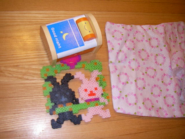 食玩のオマケとアイロンビーズでつくったうさちゃんと