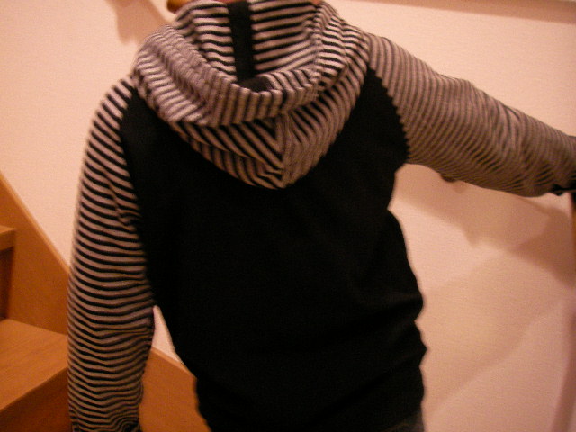 結局身頃にフードを付けるときも、縫い代を隠すのに