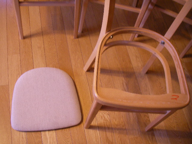 購入して7年目になる椅子・・座面がすりきれてボロッとなって