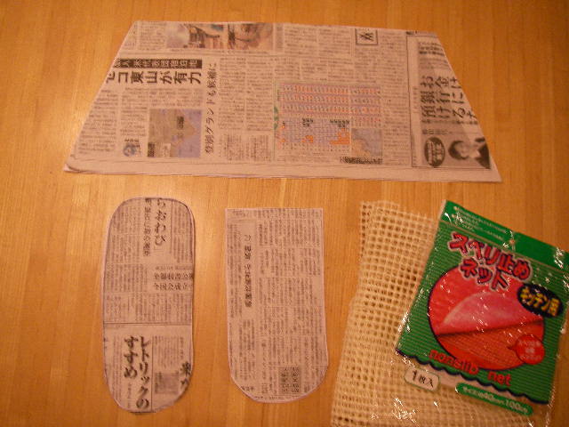 おそろしく怪しい 画用紙と新聞でできた型紙 & 100均で買った