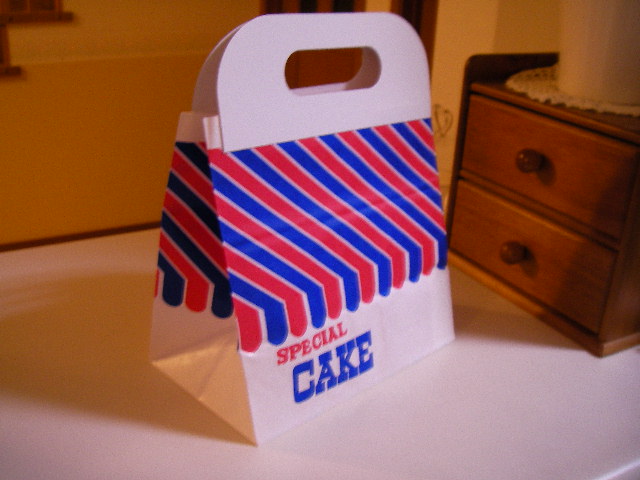 ちょっと レトロな雰囲気の ケーキバッグにいれてみました