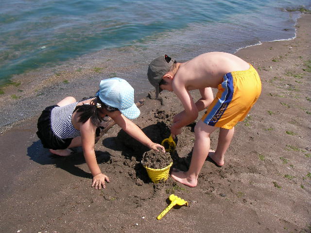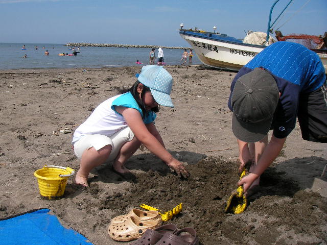 きのうは、一人で子供たちを連れて海水浴に行きました。