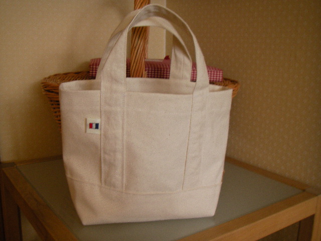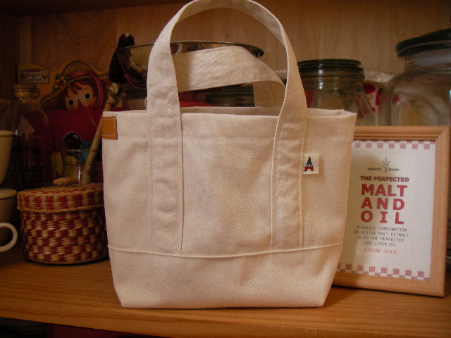 夕方、作って間もないミニトートをたまたま家にきた