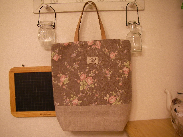 生地はYUWAハーフリネンのバラの柄とリネン