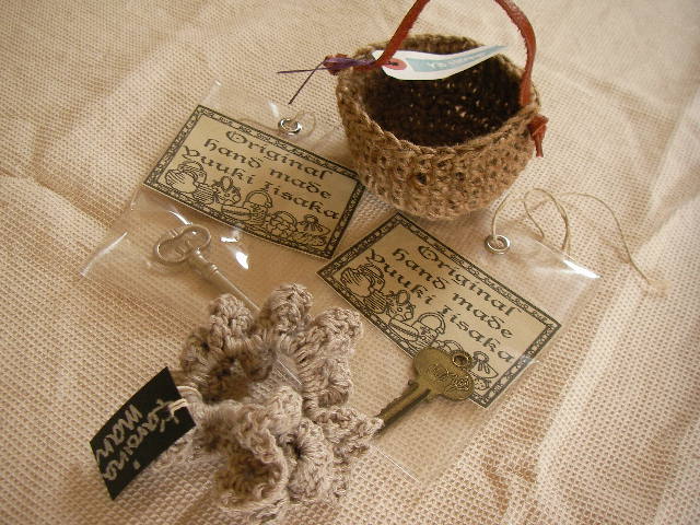 麻であんだカゴと鍵を2種類
